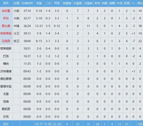 数据上一目了然,恩比德38分11板5助打爆唐斯为首的尼克斯内线群,无奈空砍。